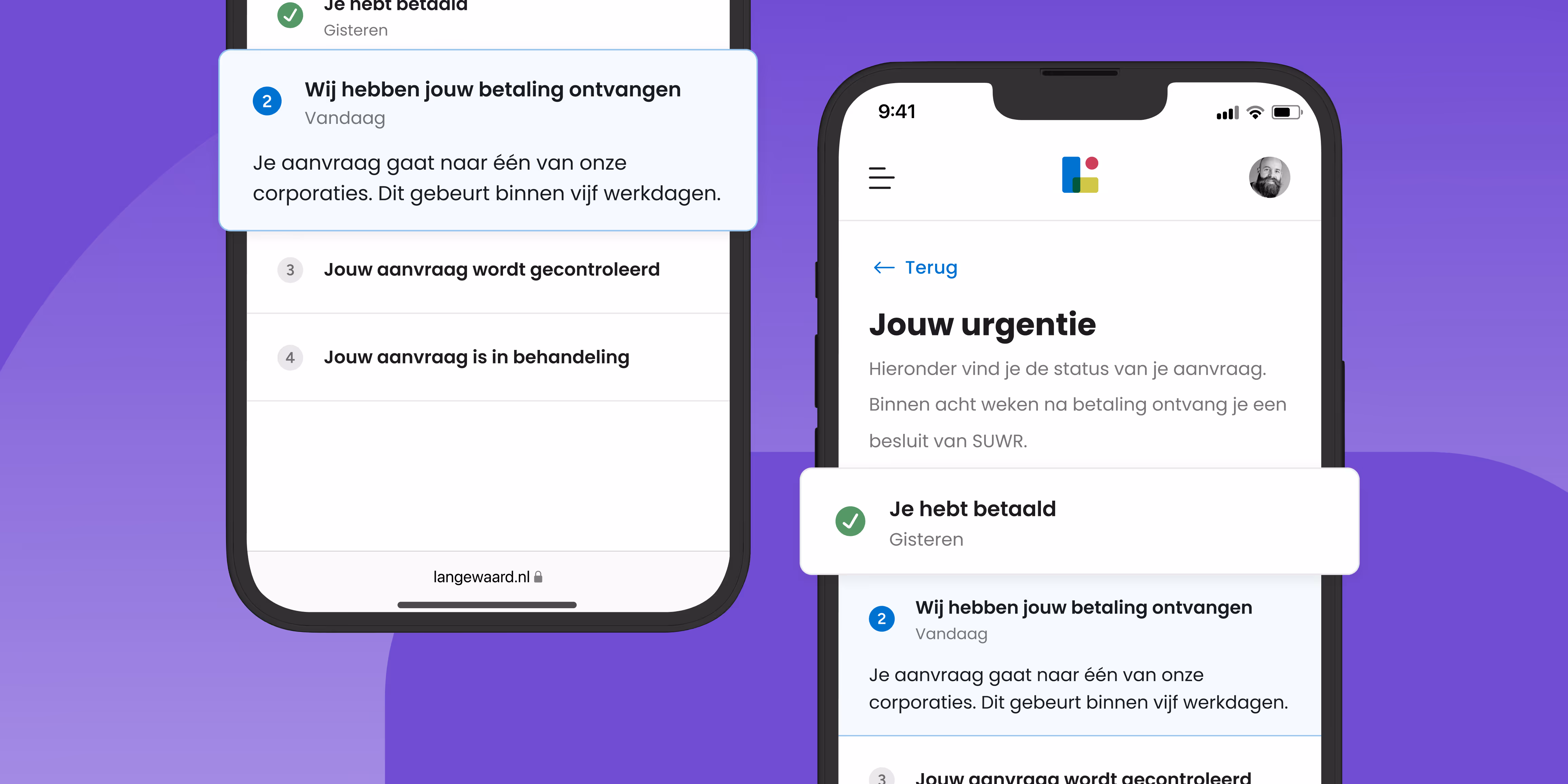 Woningzoekenden kunnen gemakkelijk zelf een aanvraag voor woonurgentie doen via hunMijn-omgeving. Ook kunnen ze daar de betaling voor de aanvraag voldoen, documenten aanleveren en het hele proces volgen. Help de aanvrager te controleren of hij/zij aan alle voorwaarden voor het aanvragen van woonurgentie bij jouw corporatie voldoet. Zo vallen het gros van de aanvragen die geen kans hebben op tijd af.